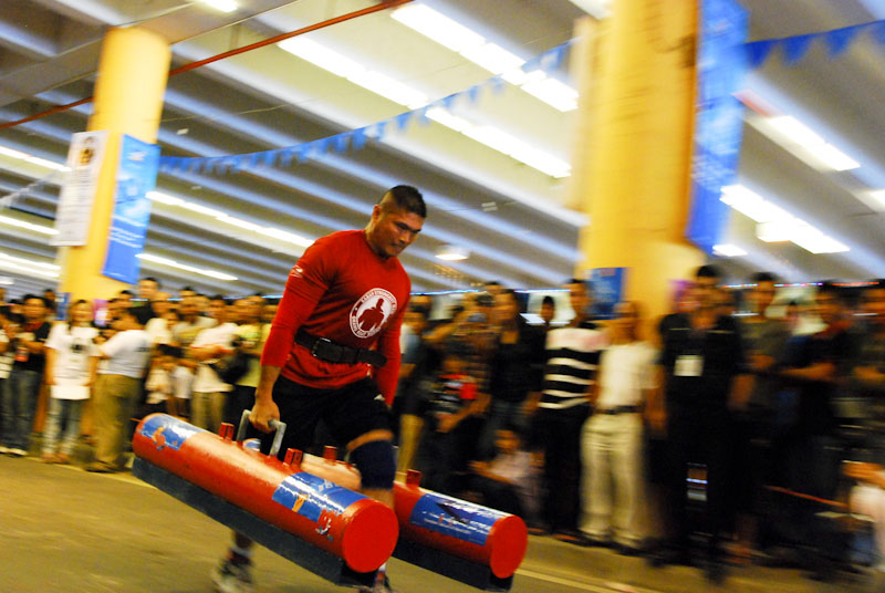 A total of 18 aspiring strongmen from all over the State, some even from Singapore, took to the stage to see how their muscles would fair against some of the toughest challenges common in strongman events.